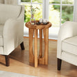 14 Inch Farmhouse End Table with Round Tray Top and Wood Cross Legs