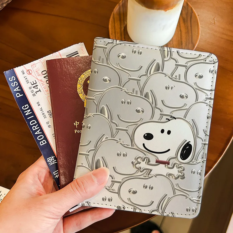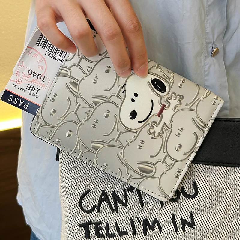 Cartoon Snoopy Passport Cover Traveling Abroad Passport Holder Women Men Travel Essentials Simple PU Leather Passport Wallet