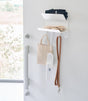 Out the door in a jiffy. Instantly create all-in-one storage for your keys, gloves, caps, sunglasses, lip balm, and other out-the-door necessities so they're ready to grab as you dash out the door. With two storage shelves and four hooks for keys and other hanging items, this magnetic entryway rack provides ample storage despite the compact design.