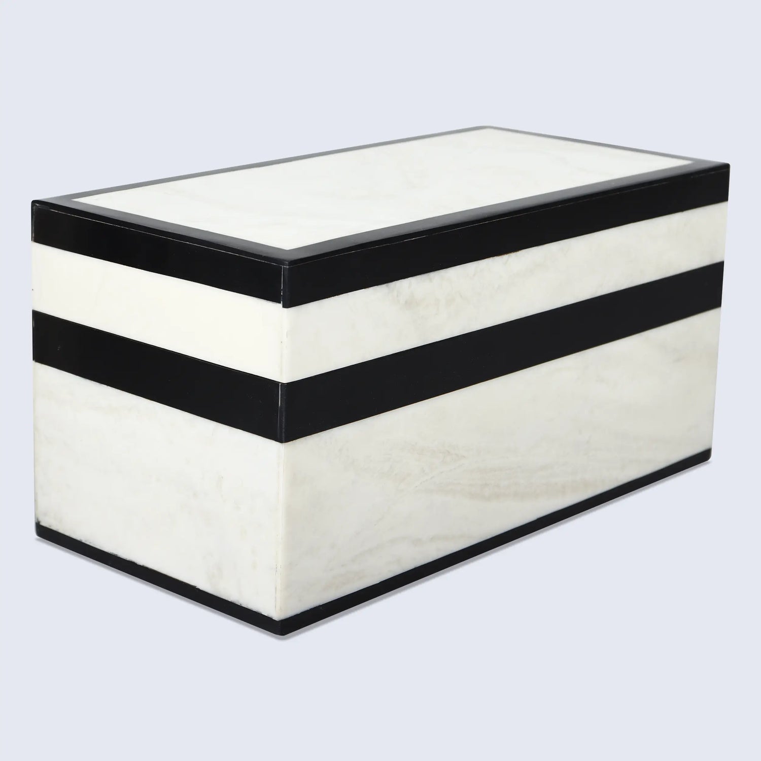 Mono Court Pattern Decorative Storage Box, Resin Inlay in 7 Sizes, Black-White