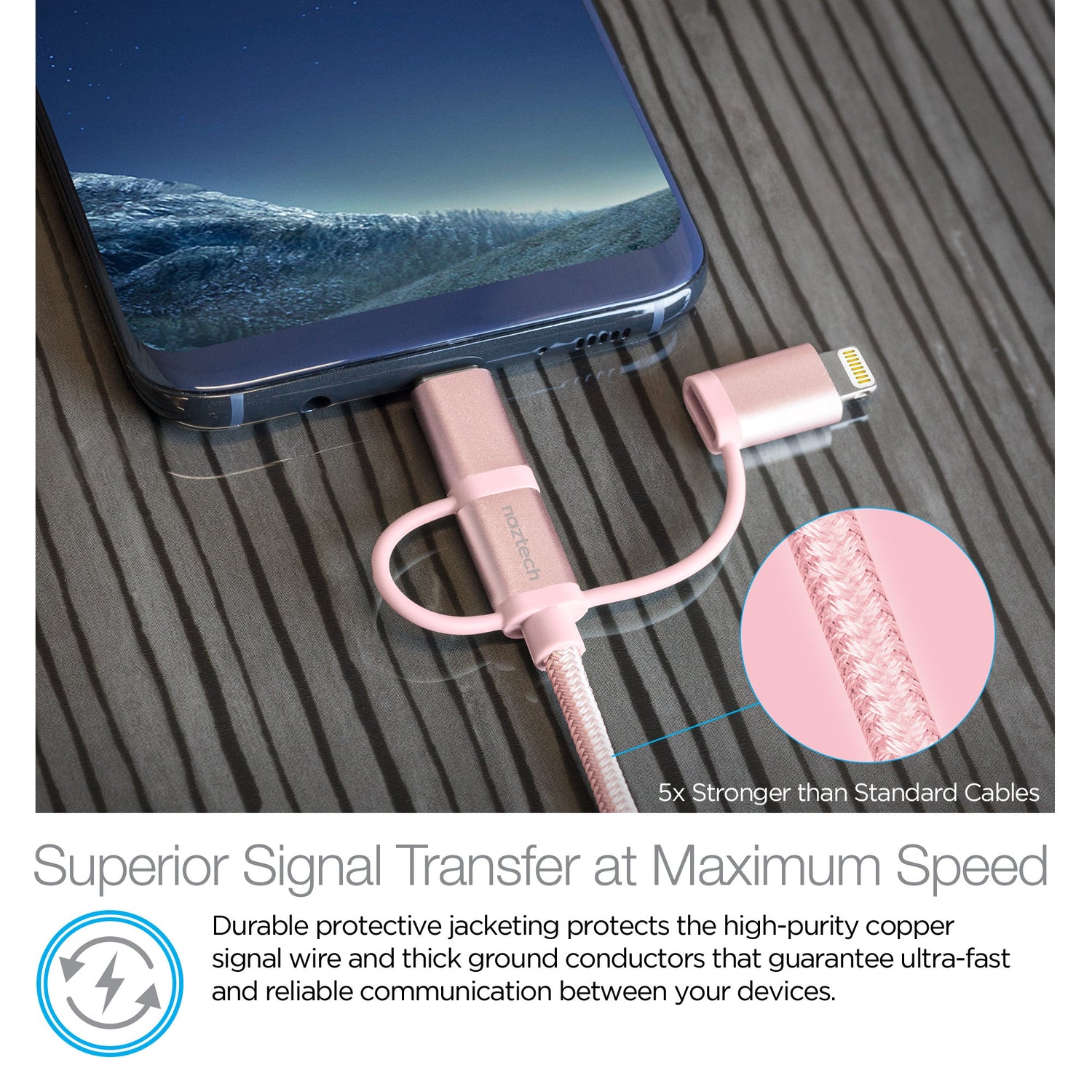 Naztech 3X1 Micro Lightning & USB-C Charge & Sync 6ft Cable - Rose Gold is backordered and will ship as soon as it is back in stock.
