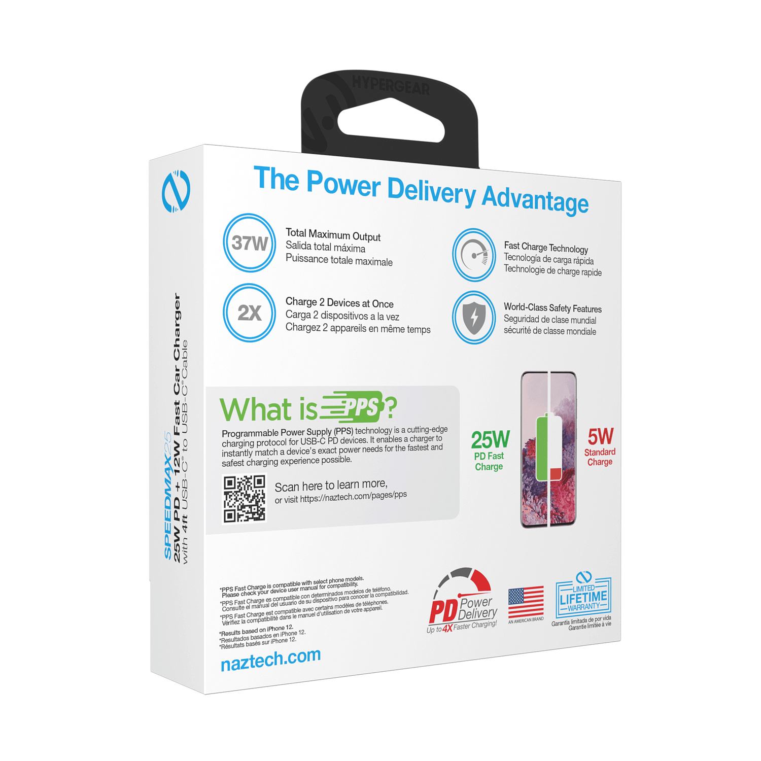 More Power. More Speed. Charge your iPhone quickly with the SpeedMax25 dual-port car charger, taking your device from 0 to 50% in just 25 minutes. The 25W USB-C Power Delivery port delivers 5 times the power of typical built-in USB ports. Thanks to its integrated PPS technology, the charger optimizes each charge, protecting your battery from harmful heat buildup. The 12W high-speed USB port runs on a separate circuit, ensuring a fast charge for your iPhone while also powering up a second device.