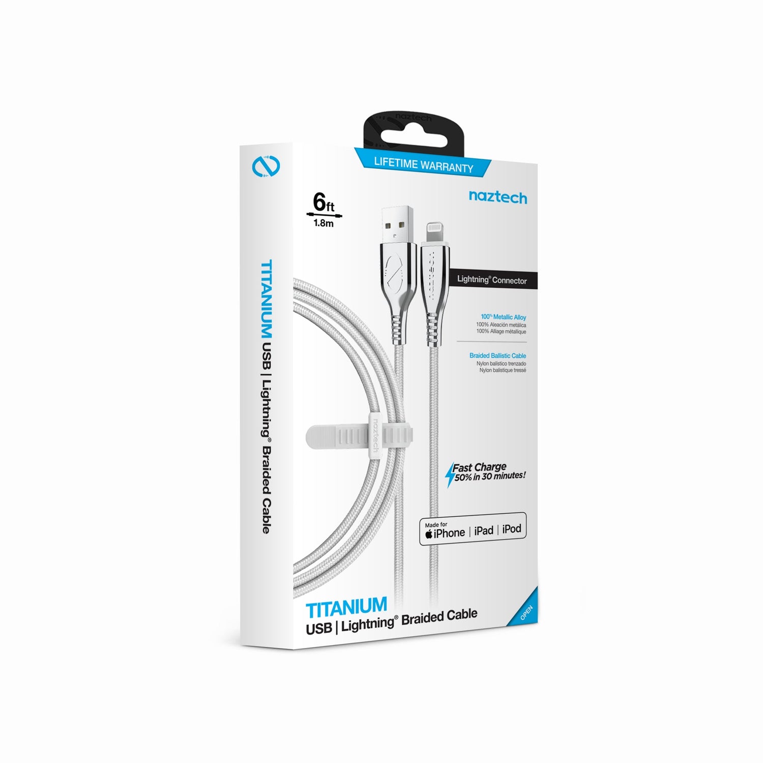 Naztech Titanium USB to MFi Lightning Braided Cable 6ft