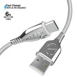 Built with titanium strength! Say goodbye to tangles, frays, splits, and weak connector tips. The Titanium cable withstands active daily use with indestructible ballistic braided nylon and is reinforced with metallic alloy connectors for unmatched durability and incredible high-speed performance. Enjoy an unrivaled 30,000X bend lifespan, making this cable 30X stronger than standard cables. Enhanced with high-purity copper wiring for the fastest data transfer rates and quickest charging times! When plugged into a fast wall adapter, fast charge your phone from 0 to 50% in just 30 minutes. At the perfect length of 6ft, you’ll never have to worry about being close to an outlet waiting for your charge. Upgrade your everyday cable to Titanium!