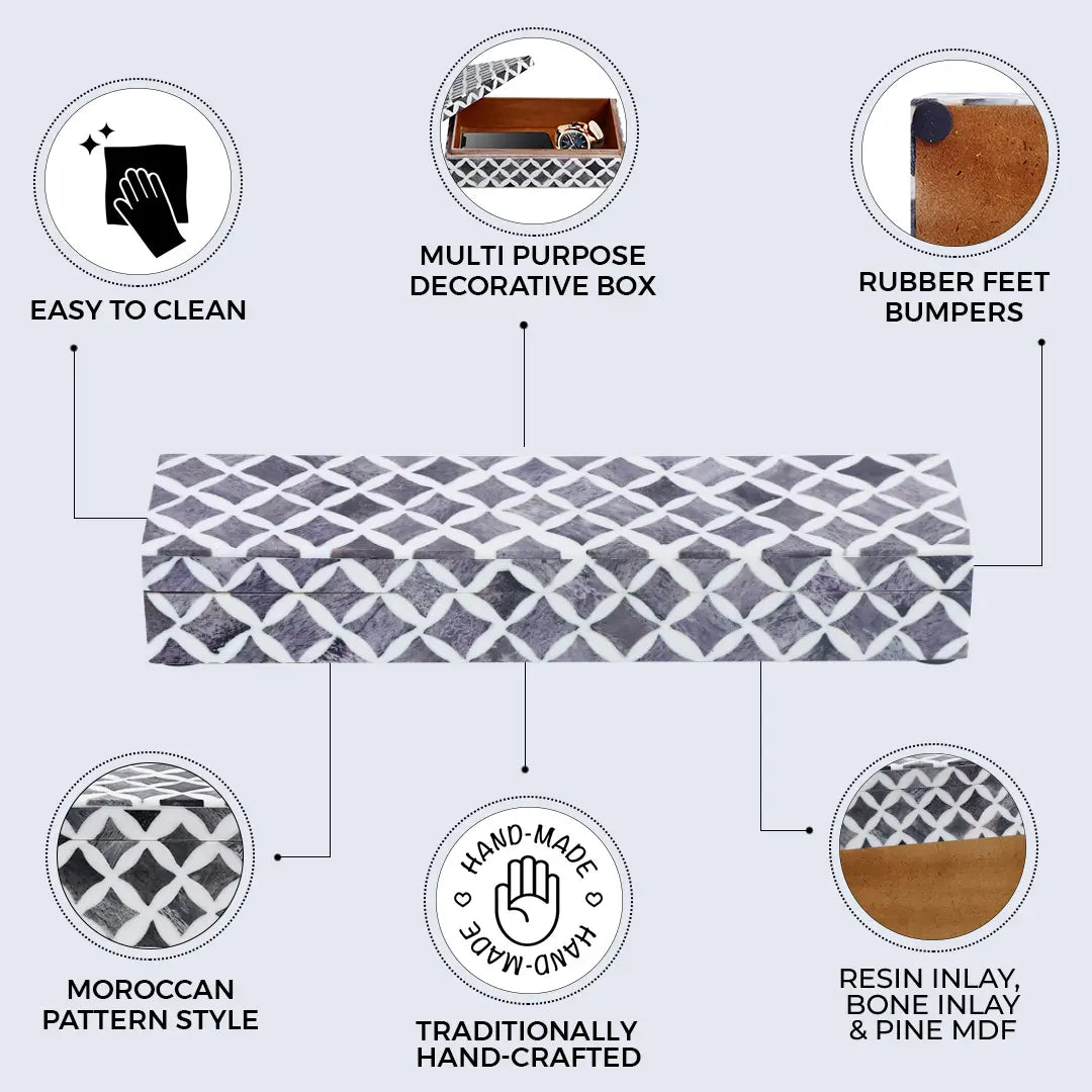Made with high-quality resin, bone inlay, and sustainable Pine MDF, this decorative box ensures long-term durability while enhancing your home’s visual appeal.