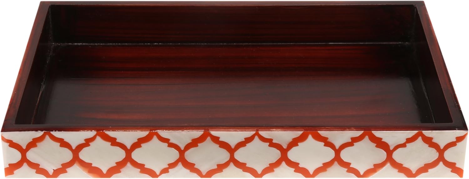 Vanity Trays Moroccan Pattern Bone & Resin Inlay Collection in 10x6, White & Red