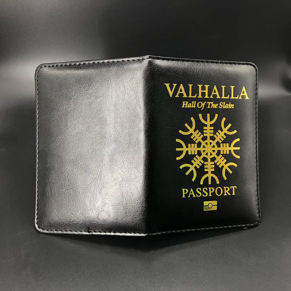 Vikings Valhalla Passport Cover Norse Mythology Passport Holder for Hall of The Slain Passport Cover Travel - black is backordered and will ship as soon as it is back in stock.