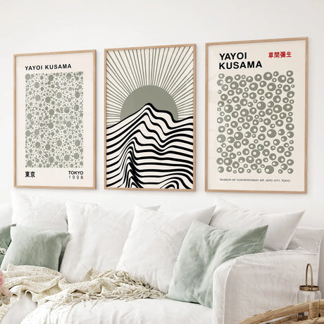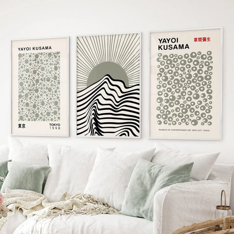 Exhibition Style Wall Art. Set of 3 Sage Green Bauhaus Prints for Apartment or Dorm