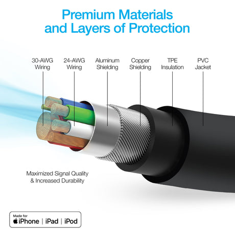 Naztech MFi Lightning Charge & Sync USB Cable 6in