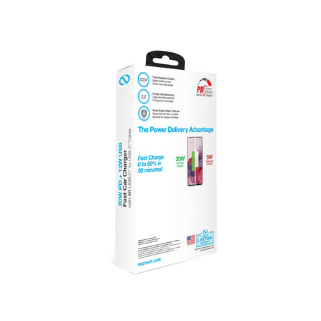 Naztech 20W PD Wall Charger + USB-C to USB-C 4ft Cable