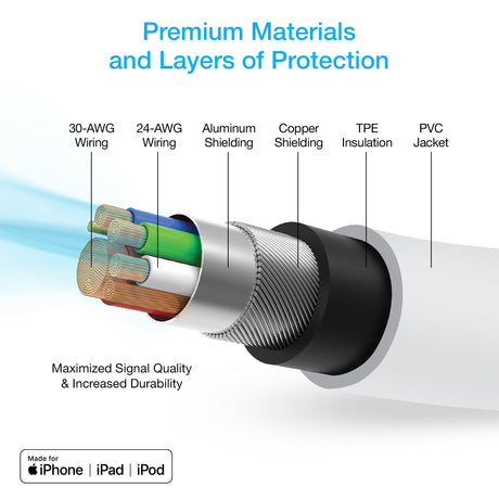 Naztech PD MFI Lightning to USB-C Cable 6ft White