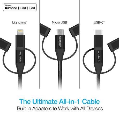 Naztech 3X1 Micro Lightning & USB-C Charge & Sync 6ft Cable