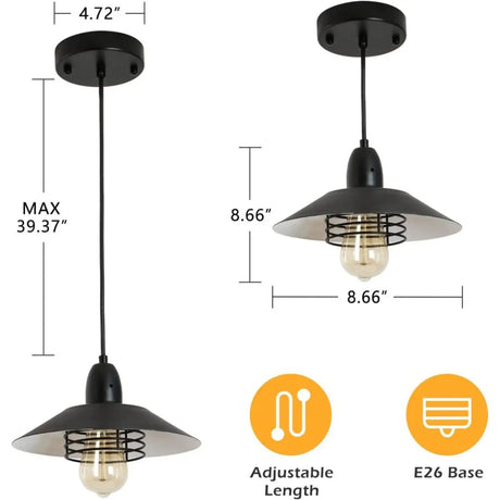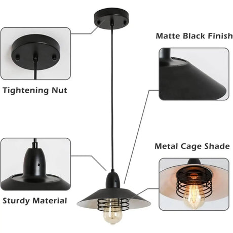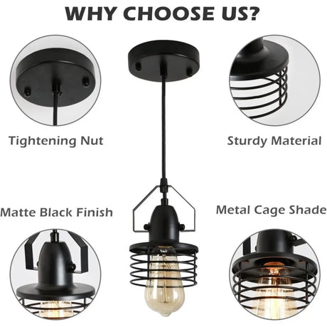 Pendant Light Kitchen Island – Industrial Black Metal Cage Fixture
