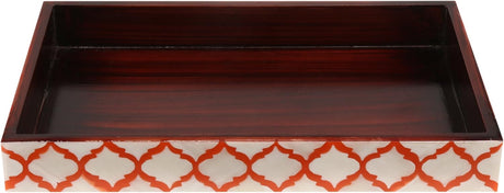 Vanity Trays Moroccan Pattern Bone & Resin Inlay Collection in 10x6, White & Red