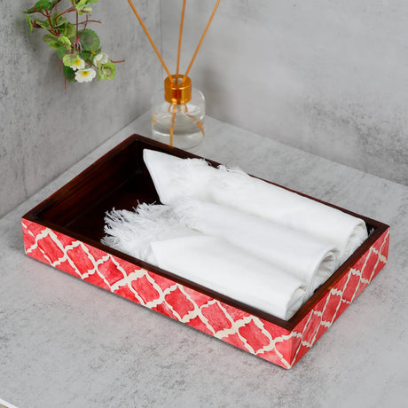 Vanity Trays Moroccan Pattern Bone & Resin Inlay Collection in 10x6, Red & White
