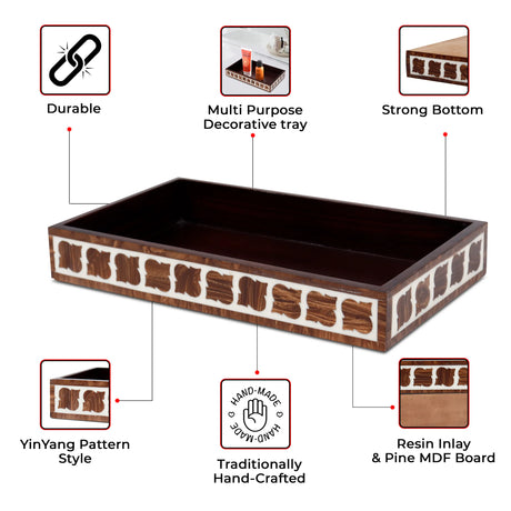 Vanity Tray Illusion Yinyang Pattern Resin Inlay Collection in 10x6, Brown