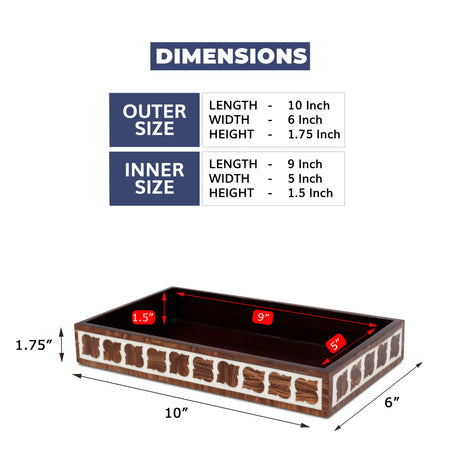 Decorative Tray Plain White Pattern Bone Inlay Collection in 2 Sizes
