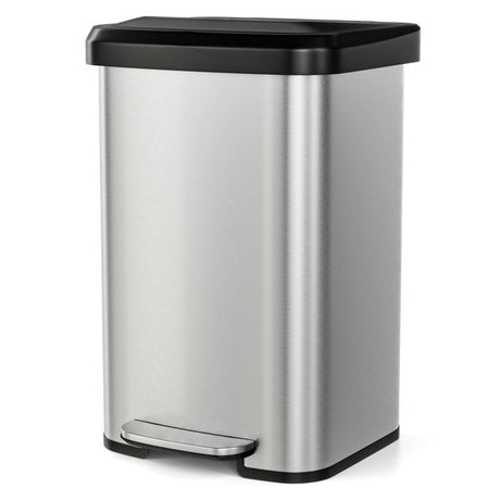 13-Gallon Silver Stainless Steel Step Trash Can with Soft Close Lid