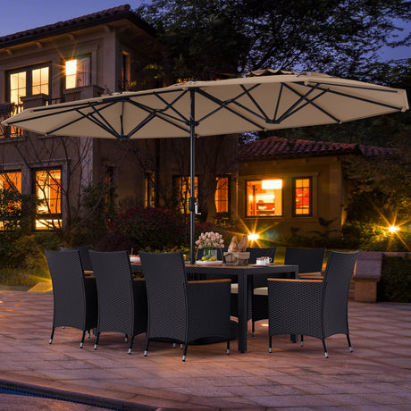 10 Piece Outdoor Dining Set with 15 Feet Double-Sided Twin Umbrella
