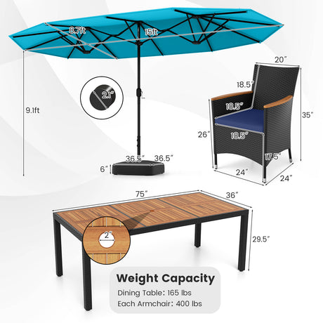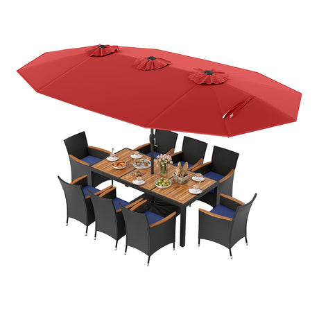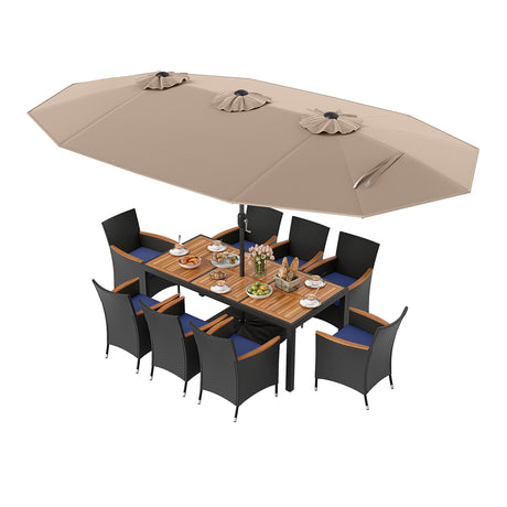 10 Pieces Patio Wicker Dining Set with 15 Feet Double-Sided Patio Umbrella