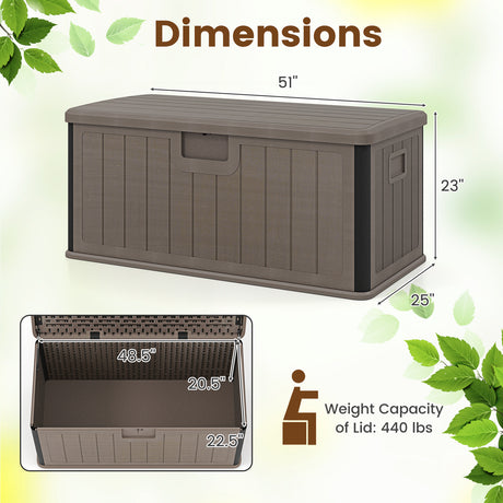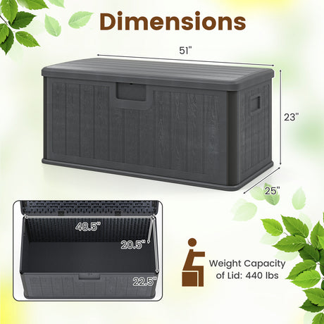 100 Gallon Resin Deck Box Outdoor Waterproof Storage Bench