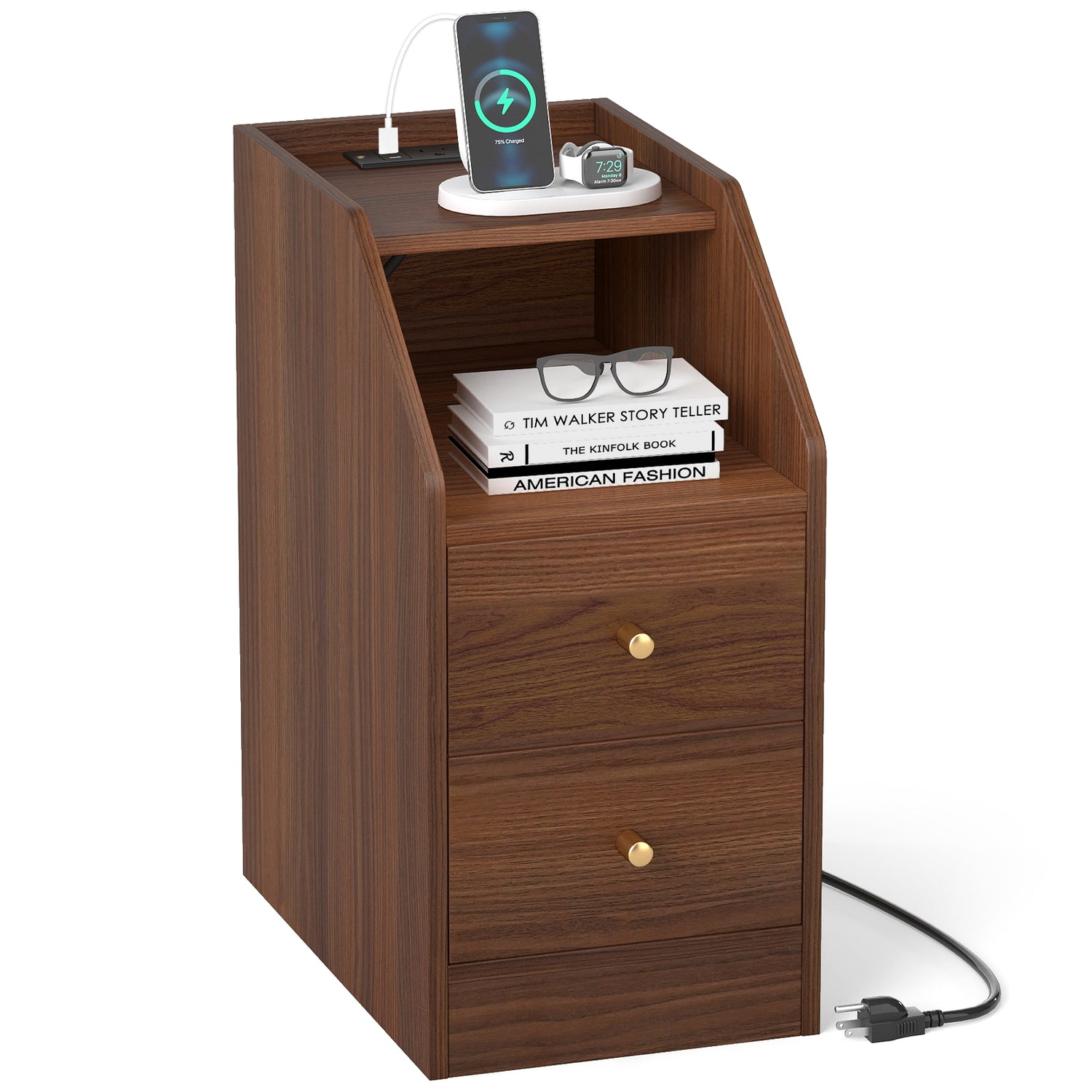 Side End Table with Charging Station Sofa Couch Table with Shelf Drawers