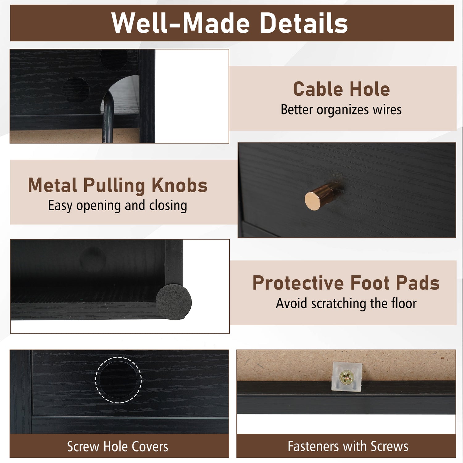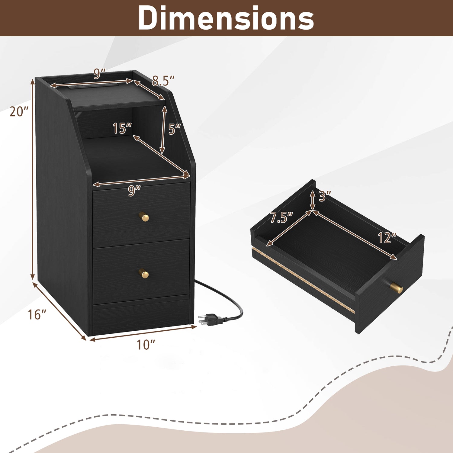 Color Black/Walnut/White Material Engineered Wood MDF Overall Dimensions 16" x 10" x 20" Size of Top Shelf 9" x 8.5" Size of Open Compartment 15" x 9" x 5" Inner Size of Drawer 12" x 7.5" x 3" Length of Power Cord 4.9 ft Load Capacity of Top Shelf 35 lbs Load Capacity of Open Compartment 35 lbs Load Capacity of Each Drawer 25 lbs Net Weight 19 lbs Box QTY 1(May vary by batch) Is Assembly Required Yes