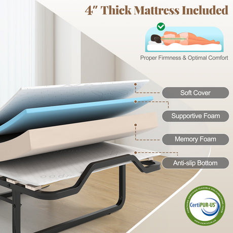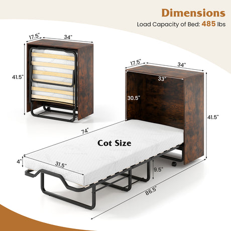Cot Size Murphy Bed with Foldable Bed and Lockable Wheels