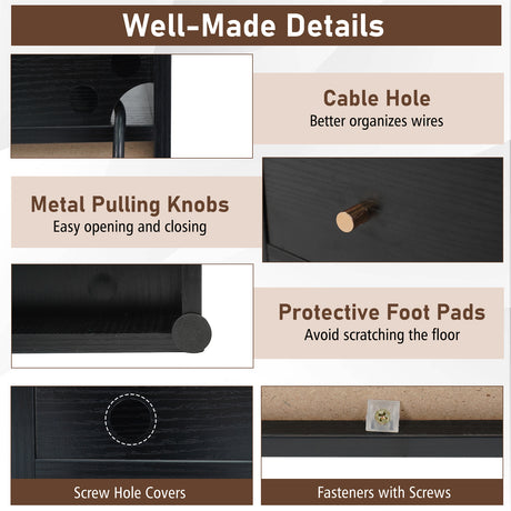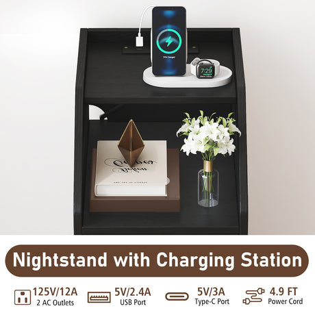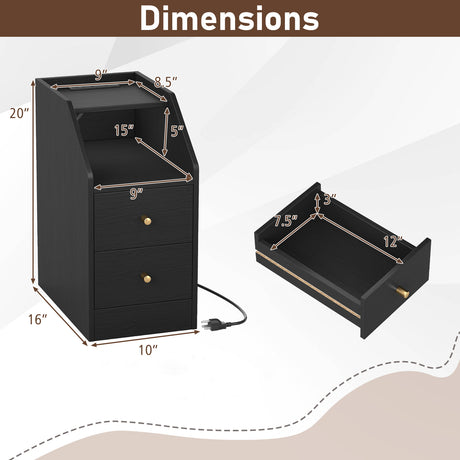 Side End Table with Charging Station Sofa Couch Table with Shelf Drawers
