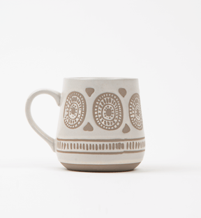 Having a beautiful mug for drinking hot coffee or tea makes the experience even more enjoyable. Enjoy relaxing with one of these beige and white stoneware mugs while overlooking a beautiful sunrise or sunset. With additional mugs, these special moments and hot drinks can be shared with family and friends.