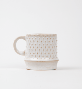 This stoneware mug is a stylish way to serve coffee or tea while entertaining. The fun hobnail design gives it an update look with a vintage feel. The white finish allows it to mingle nicely with other tableware of varying colors.