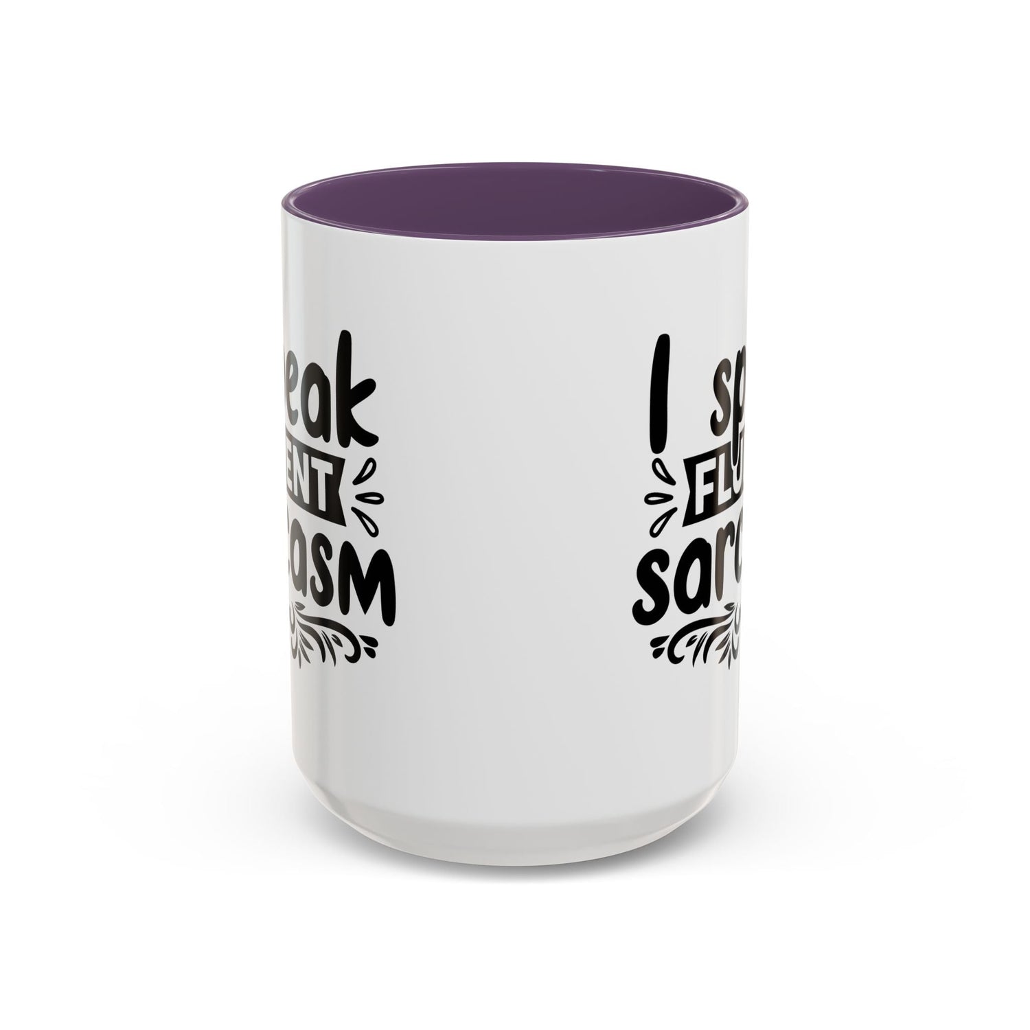Mug - Funny Quote, I Speak Fluent Sarcasm - 11, 15oz Accent Coffee Mug