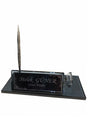 This desk name holder is unlike any other on the market. Made with black clear glass and accented with a golden pen set and glass name holder base, it exudes elegance and sophistication. Its size of 23x12x5.5 cm makes it the perfect addition to any desk, adding a touch of luxury to your workspace.