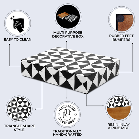Triangle Pattern Decorative Storage Box, Resin Inlay in 7 Sizes, Black & White