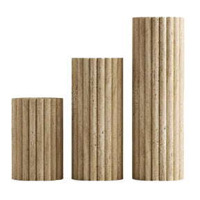 Troia Light Travertine Plinth Side Table Fluted Unfilled, Honed