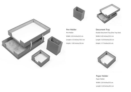 MOOG Leather Desk Set-3 Accessories-Double Document Tray - Gray - 3 PCS