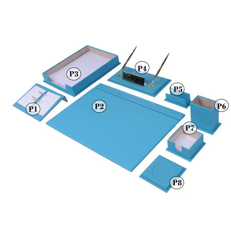 MOOG Leather Desk Set – 7-Piece Organizer-Blue