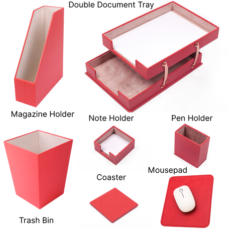 MOOG Leather Desk Set – 7-Piece Organizer-Red