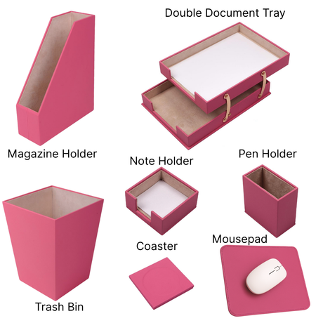 MOOG Leather Desk Set-5 Accessories -Pink - 5 PCS