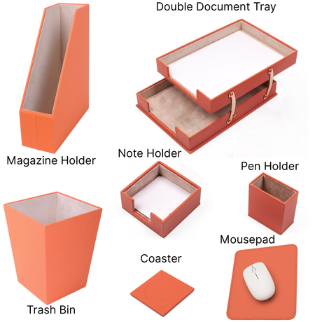 MOOG Leather Desk Set – 7-Piece Organizer-Orange