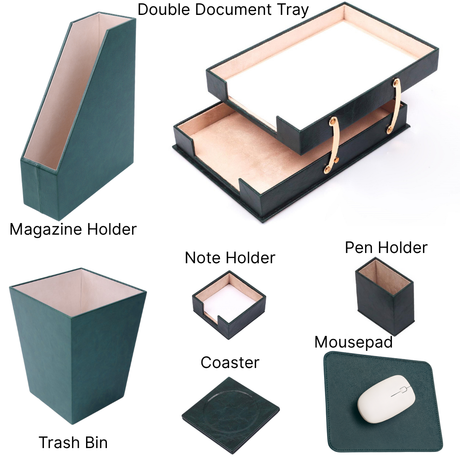 MOOG Leather Desk Set-3 Accessories-Double Document Tray - Green - 3 PCS