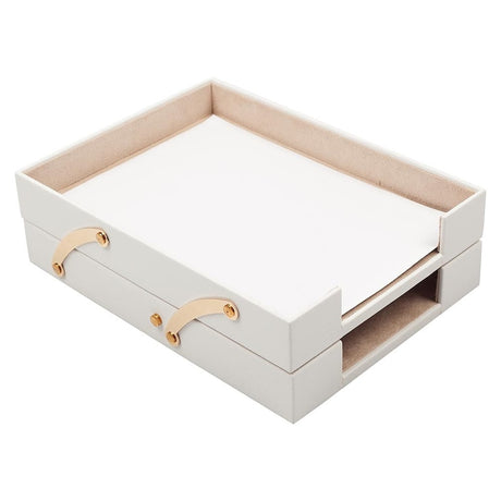 MOOG Leather Desk Set-3 Accessories-Double Document Tray - White- 3 PCS