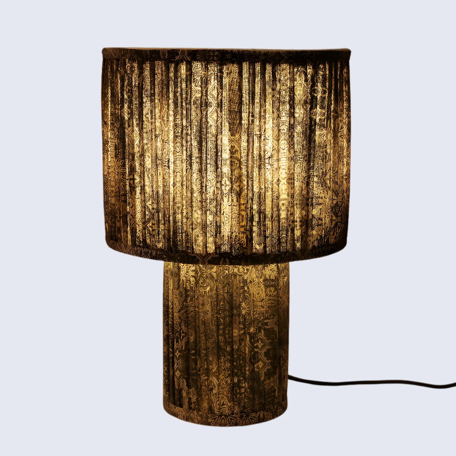 Artisan Pleated Design: Both lamps feature printed cotton pleated fabric over a durable metal frame, creating a handcrafted, soft-lit ambiance.