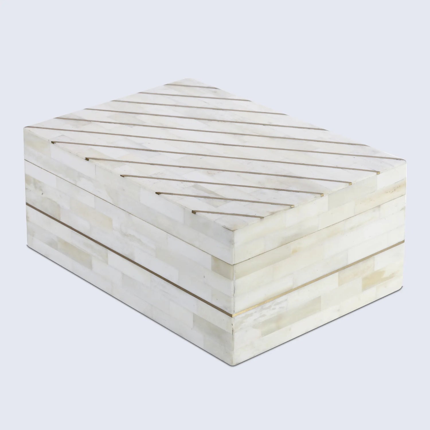 Aegean Pearl Bone Inlay & Brass Decorative Storage Box in 2 Sizes