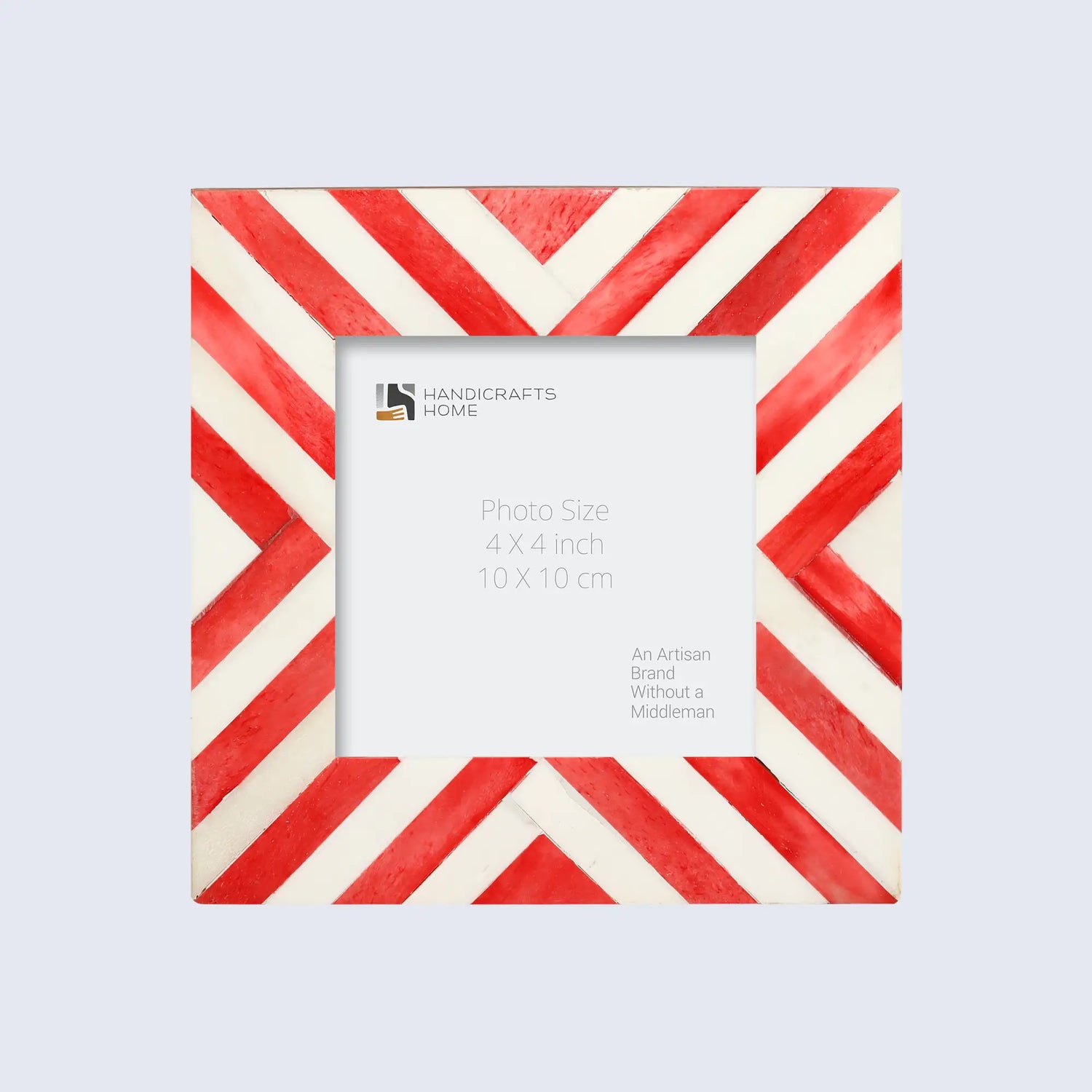 Baby Picture Frames Chevron Pattern Bone Inlay Collection in 6 Colors - 4x4 / Red-White is backordered and will ship as soon as it is back in stock.