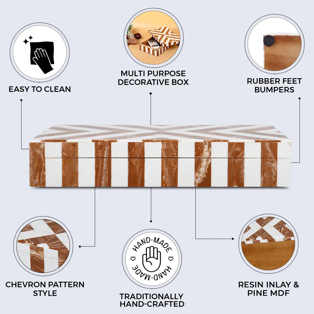 Chevron Pattern Decorative Storage Box, Bone Inlay in 6 Sizes, Brown & White - Brown-White / 8x5x1.5 is backordered and will ship as soon as it is back in stock.