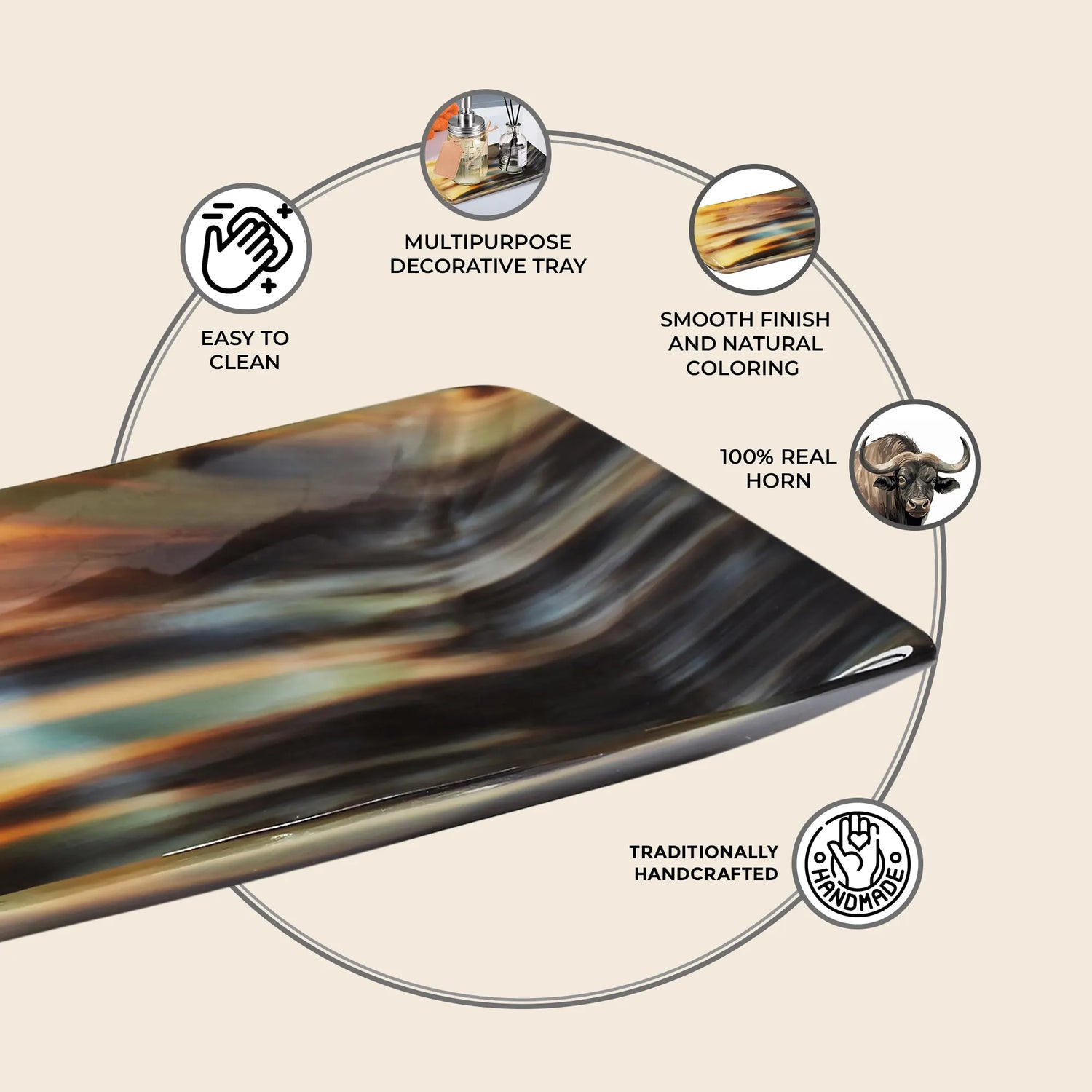 Decorative Horn Vanity Serving Tray in 4x7 inch, Black & Brown