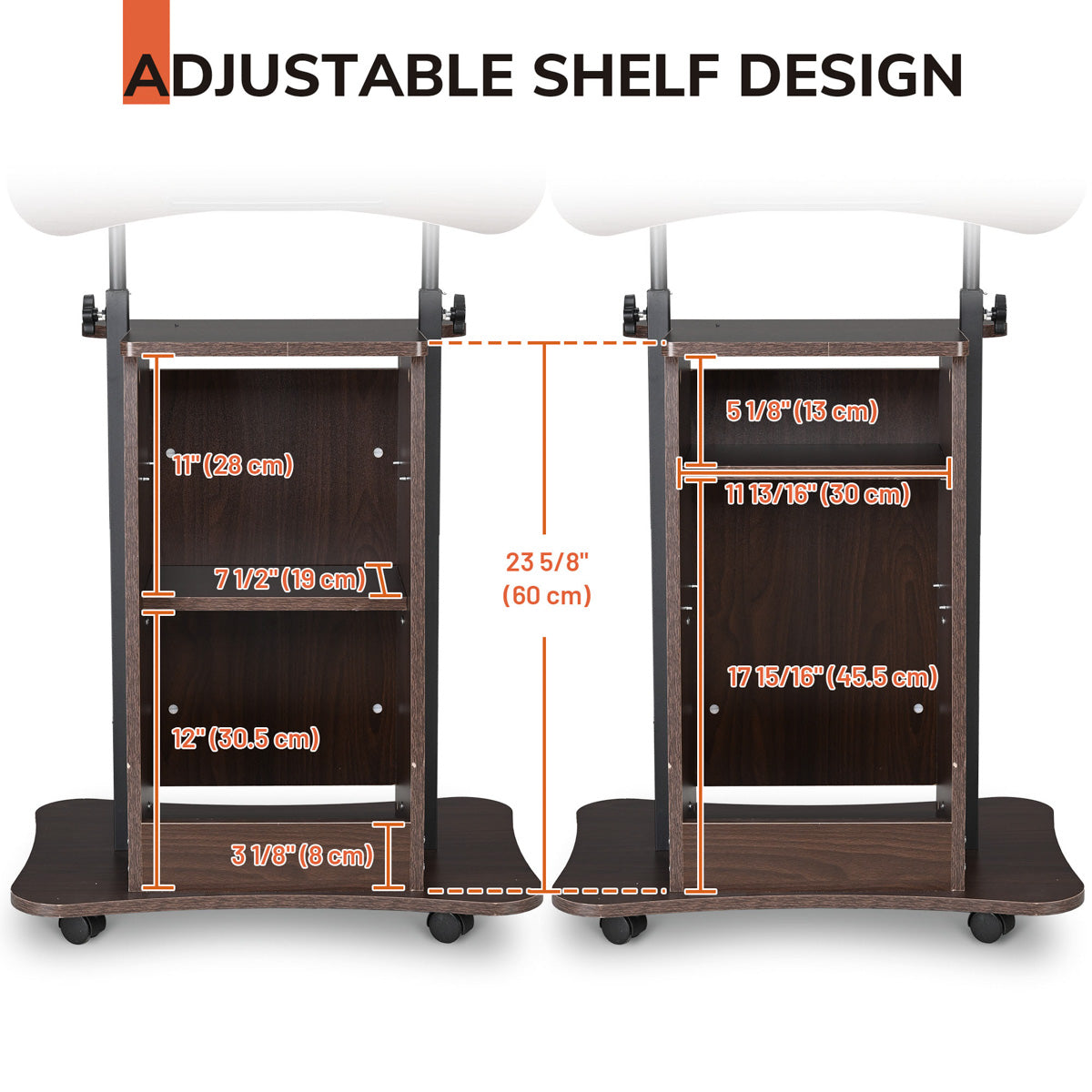 Yescom Height-Adjustable Rolling Laptop Cart with Storage