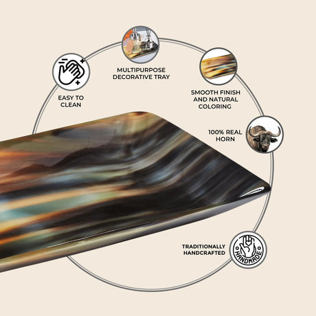 Decorative Horn Vanity Serving Tray in 4x7 inch, Black & Brown
