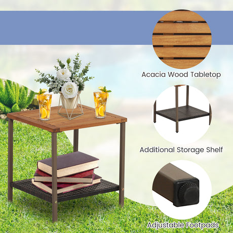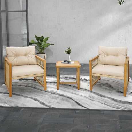 3 Pieces Acacia Wood Patio Furniture Set with Armchairs Coffee Table